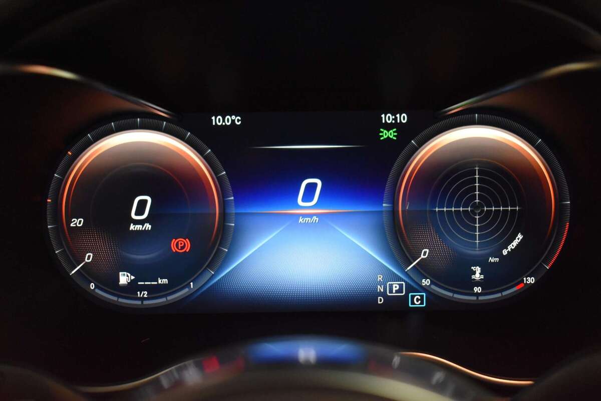 - AMG Line Interior (Combi-instrument met twee ronde klokken inclusief 13,97 cm (5,5 inch) multifunctioneel display, Luchtuitstroomopeningen met rand Nürburgzilver; ring, draaiknop en voorkant lamellen zilverchroom, Sportpedalen, Zachtboard vloermatten) (P29)