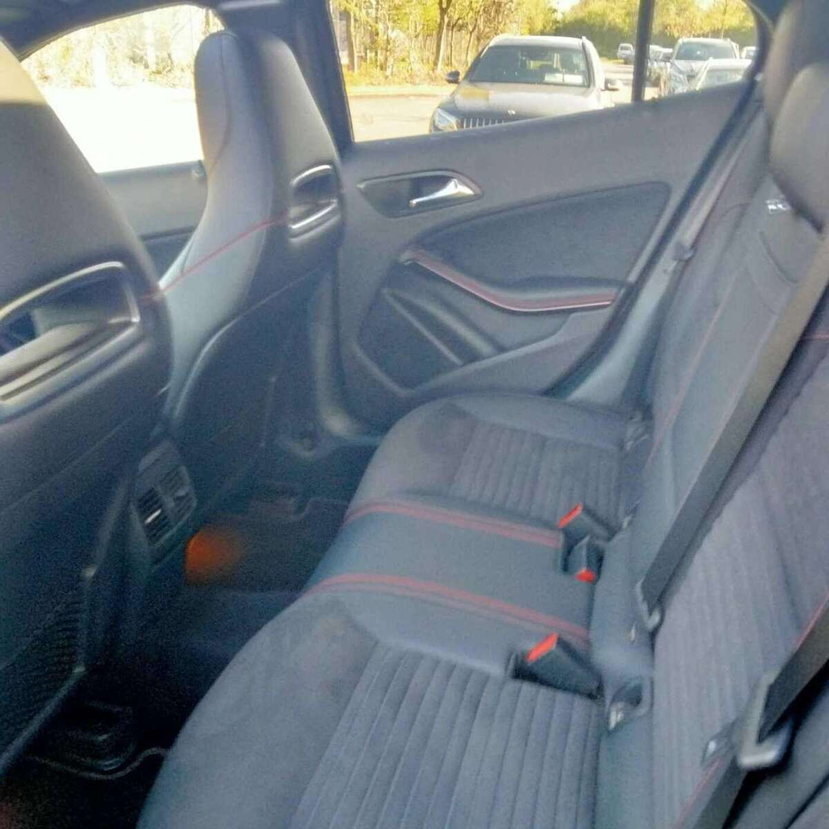 - Vloermatten in cord met rand in zwart, contrastsiernaad in rood en opschrift 'AMG' (U26)